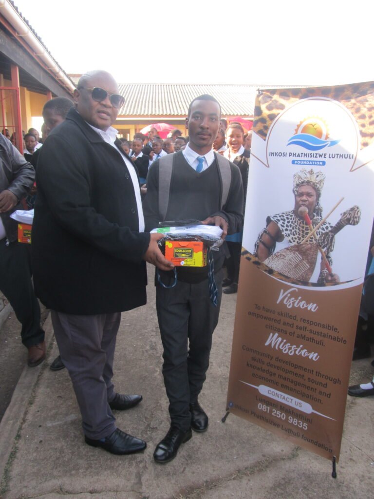 “Ukubaluleka kokwazi ulimu lwebele kuyinto bafundi ekumele niyiqonde ningaphambanisi ngoba ulimu lwesintu ilona ekumele singaluphambanisi, imfundo njengamanje iyona ekumele niyiqikelele ukuthi niyafunda niyaphasa ukuze nivuse amakhaya niphinde nakhe nesizwe ngemfundo.Okumqoka njengoba sinikela ngalomfaniswano sisekela imfundo ukuthi ayiqhubeke kubantu abasha. Kuzokhumbuleka ukuthi izinhlelo ezinjengalezi asiqali ngazo unyaka nonyaka sinikela ngama laptop kubafundi abaphase kahle kumatikuletsheni esithembayo ngonyaka ozayo bazoba baningi abazolanda ama laptop engiwapha abafundi abaphase kahle. Sibonga ukusebenza okuhle nabaphathi bezikole ukuze lohlelo luqhubeke ngempumelelo, siyathemba zonke izikole eziyishumi nane (14) sizohamba sifike kuzo ngokubambisana okuhle nabasixhasile kulohlelo. ” kuphetha INkosi P Luthuli Wesizwe saseMnini eNingizimu neTheku.